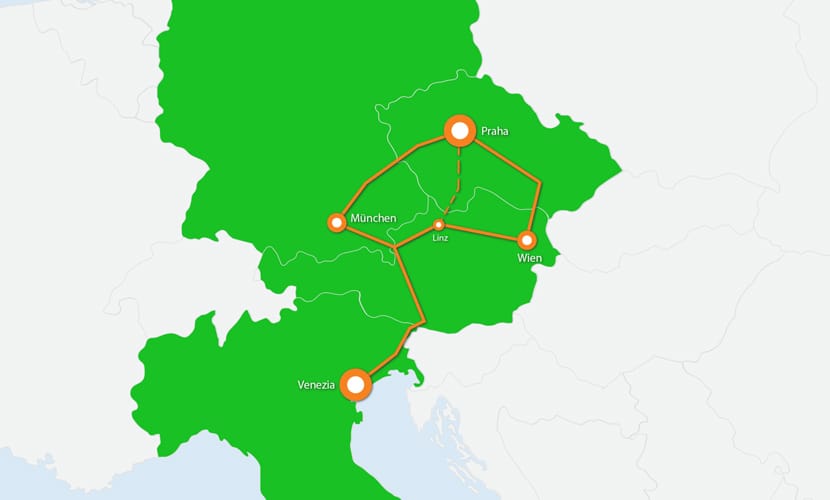 | Mnichov - Benátky | 11:33 - 18:25 | 58,70 EUR | EC 85 |