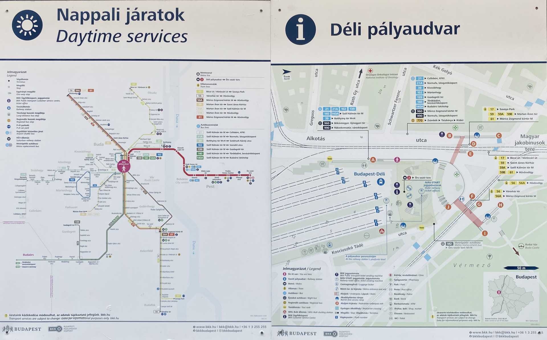 Spoje Českých drah končí na nádraží Nyugati pályaudvar (západní nádraží). Jedná se nádraží blízko centra, kterou prochází metro M3. Vedle nádraží se nachází také velký obchodní dům. Nádraží nyní prochází rozsáhlou rekonstrukcí.Budapest Nyugati, na druhé straně, je jedním z nejstarších nádraží v Budapešti a je umístěno v západní části města, což je přesný význam slova “Nyugati”. Je tato železniční stanice známá svou impozantní neoklasicistní architekturou, kterou navrhl Gustave Eiffel, tvůrce proslulé Eiffelovy věže v Paříži. Nádraží Nyugati je obklopeno rušným městským životem, s mnoha obchody, restauracemi a kavárnami v okolí. Nachází se v blízkosti Margitovy ostrova a nábřeží Dunaje, které jsou velmi oblíbenými místy pro pěší procházky a relaxaci.