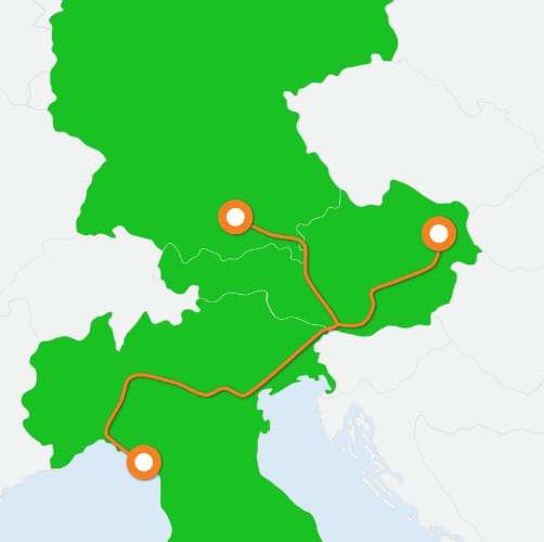 Do La Spezie se můžete vydat z Mnichova a Vídně. Ve Villachu (Rakousko) se vozy spojí a pokračují dále do Itálie. Příjezd do do La Spezie je v 11:10 dopoledne. Zpět vlak vyráží v 17:07 odpoledne. Do Vídně vlak přijíždí pár minut po 9 hodině ranní a v Mnichově je před půl 10 dopoledne.